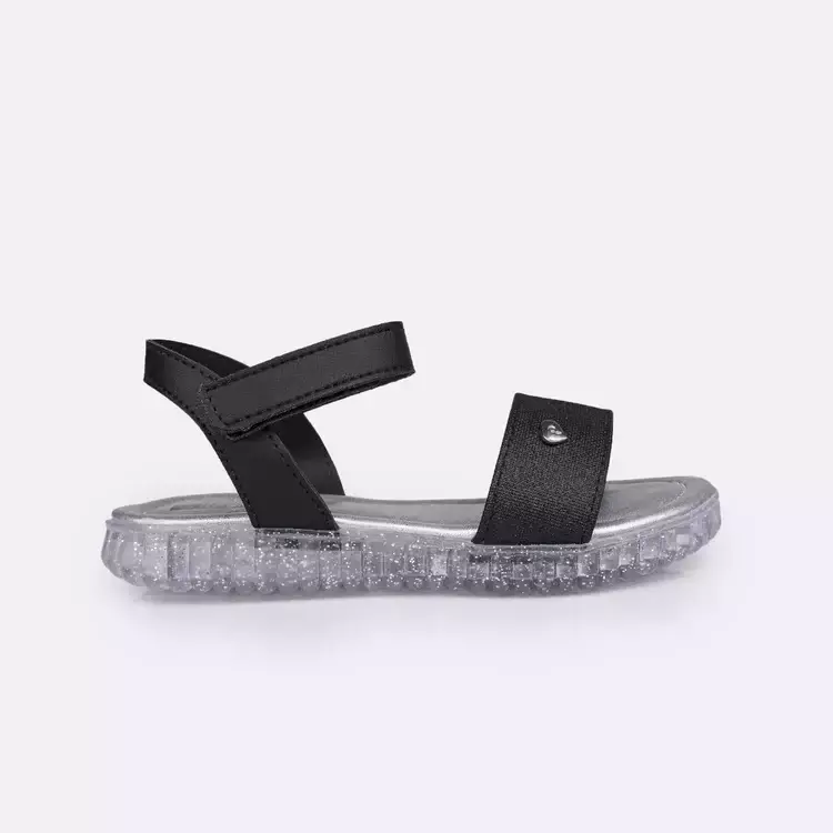 Sandália infantil feminina em material sintético preto, perfeita para meninas que desejam conforto e estilo em qualquer ocasião. Papete com palmilha anatômica, confortável e flexível para cuidar do bem estar dos pezinhos. Papete infantil com calce fácil e fecho ajustável, facilitando o calce. A sola transparente com detalhes texturizados garante aderência e segurança ao caminhar. Ideal para festas, passeios e momentos especiais, essa sandálinha combina modernidade e versatilidade!