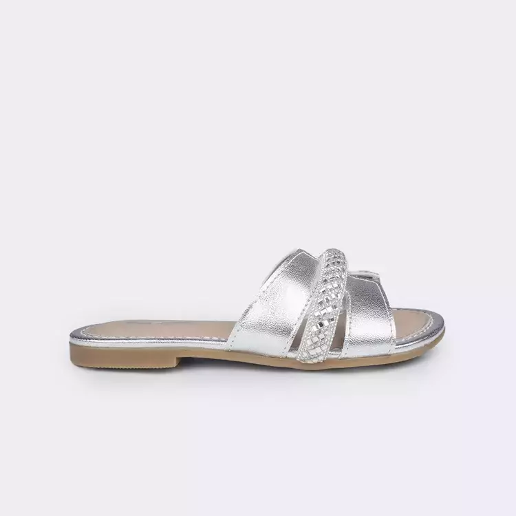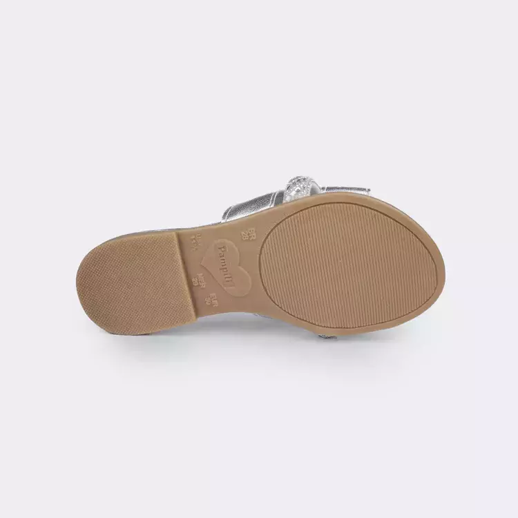 Rasteirinha infantil em sintético prata, adornada com tira cravejada em pedrinhas e strass na parte superior, perfeita para acompanhar a menina nos dias quentes de verão com estilo e delicadeza! Sandália de dedo com palmilha forrada em espuma, para mais conforto ao caminhar. Sandália rasteira infantil com solado feito em material emborrachado, que possui aderência com o chão, proporcionando flexibilidade, menor desgaste e maior resistência térmica.
