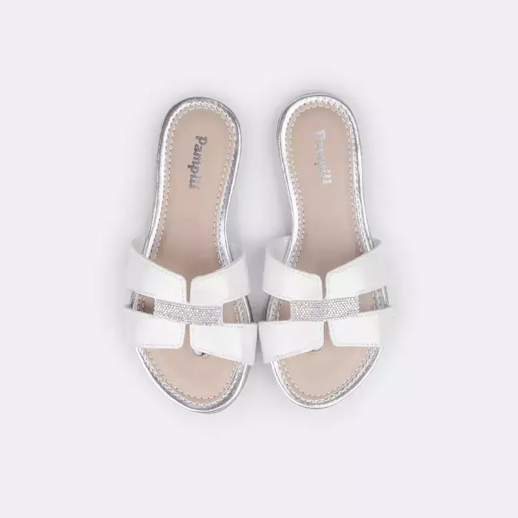 Rasteirinha infantil em sintético branco, com faixa em manta de strass na parte superior, perfeita para acompanhar a menina nos dias quentes de verão! Sandália com palmilha forrada em espuma, para mais conforto ao caminhar. Sandália rasteira infantil com solado feito em material emborrachado, que possui aderência com o chão, proporcionando flexibilidade, menor desgaste e maior resistência térmica.