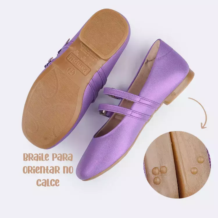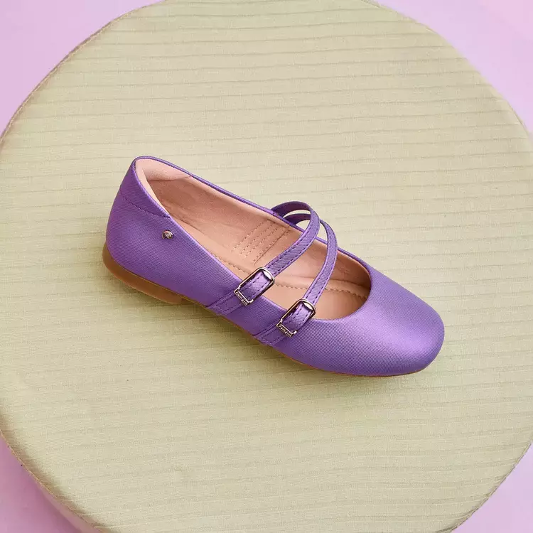 Sapatilha infantil roxa com fivela, inspirada na delicadeza do ballet, perfeita para meninas que amam moda e brilho. O modelo traz acabamento metalizado, com textura suave, deixando o visual ainda mais moderno.