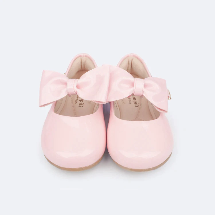 Sapato infantil feminino em sintético envernizado rosa com laço removível na tira superior, possibilitando usar de diversas formas em qualquer ocasião! Sapato infantil forrado com tecido que auxilia na absorção do suor e com espuma no calcanhar. Sapato feminino com palmilha anatômica, confortável e flexível para cuidar do bem estar aos pezinhos desde os primeiros passos. Sapatilha feminina com solado emborrachado antiderrapante, leve e flexível. Sapatilha infantil com fechamento em fivela sem pino, que facilita o calce para a mamãe!