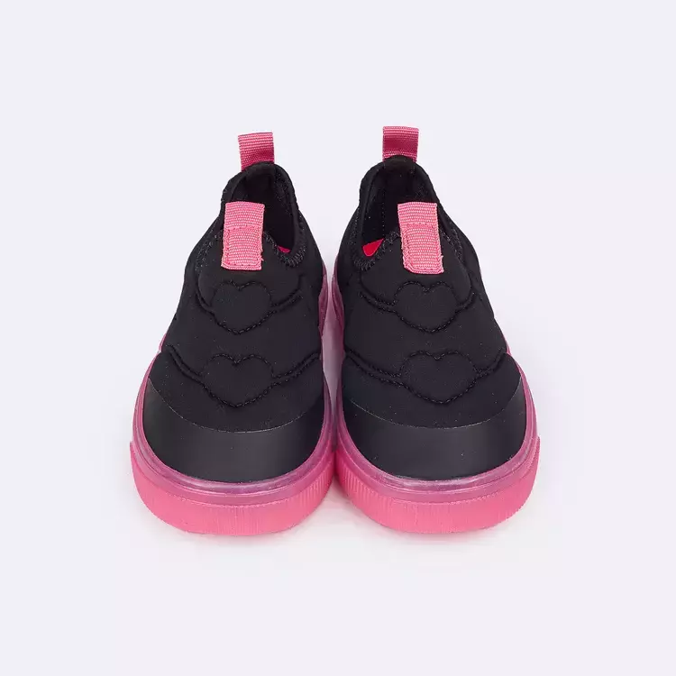 Tênis feminino infantil em lycra com bordados exclusivos de coração, casual e moderno para os passeios! Tênis feminino com forro interno que auxilia na absorção do suor e palmilha anatômica para maior conforto ao caminhar. Tênis calce fácil sem amarração, basta colocar o pezinho, dando autonomia para as meninas e facilitando o calce para as mamães. Tênis de solado emborrachado em TR ECO, material que possuí em sua composição 20% de matérias primas vindas de fontes renováveis. O solado possuí escrita em braile indicando o lado direito e esquerdo para meninas cegas ou com baixa visão!